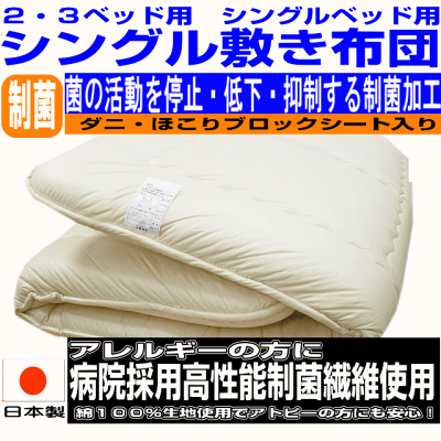 商品についての詳細はこちらをクリック この寝具は、ダニ・ ほこりが出にくくしている不織布ブロックシートが清潔&安心を提供 『アレルギーの方にハウスダスト、ダニ防止(防ダニ)、花粉症対策の多層式敷き布団』 他社にないの当店オリジナルの制菌敷き布団です。